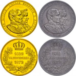 Sachsen Goldabschlag St. des Doppeltalers 1872